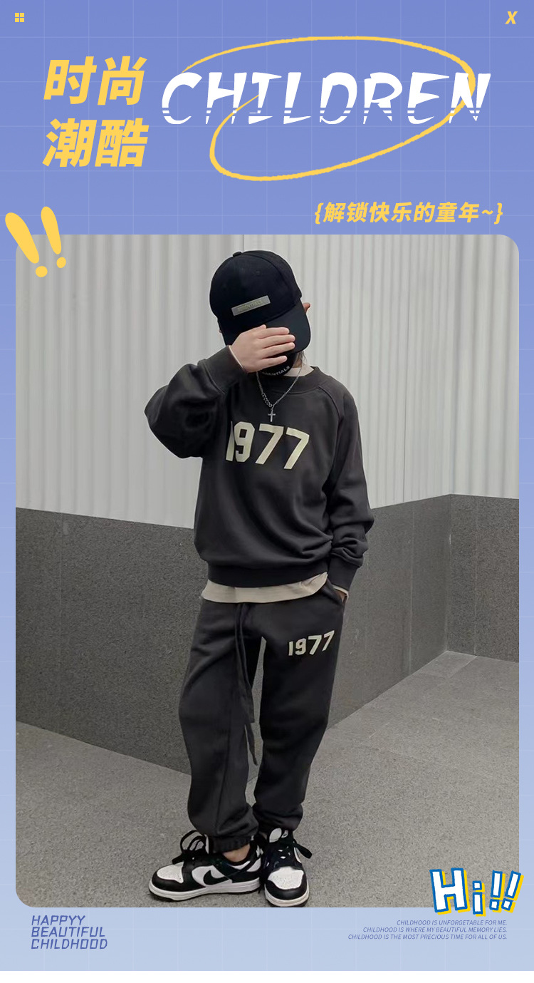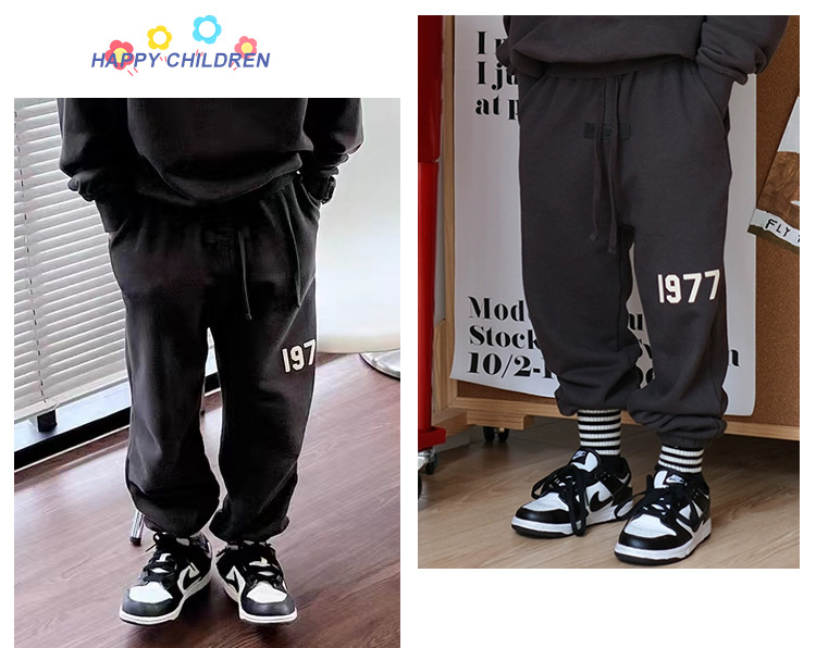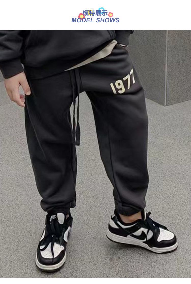 FOG Double Line ESSENTIALS Children's Autumn and Winter Plush Casual Loose Sports Closure Pants Trendy Brand Parent Child Clothing