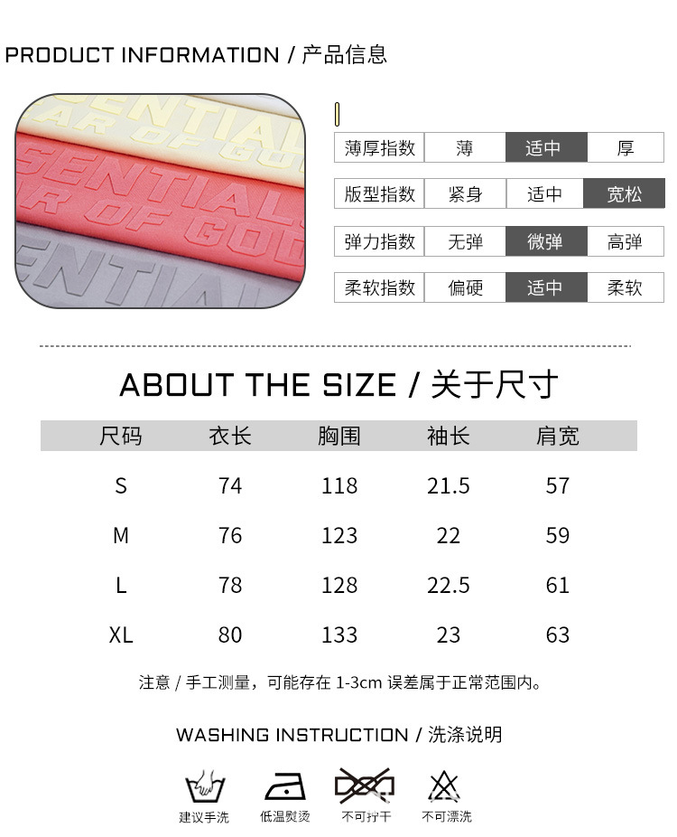 FOG Double Line ESSENTIALS FW22 Front Plush Large Logo Short Sleeve American High Street Trendy Brand Couple T-shirt