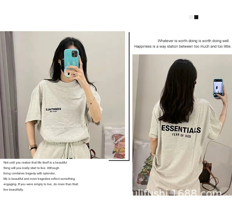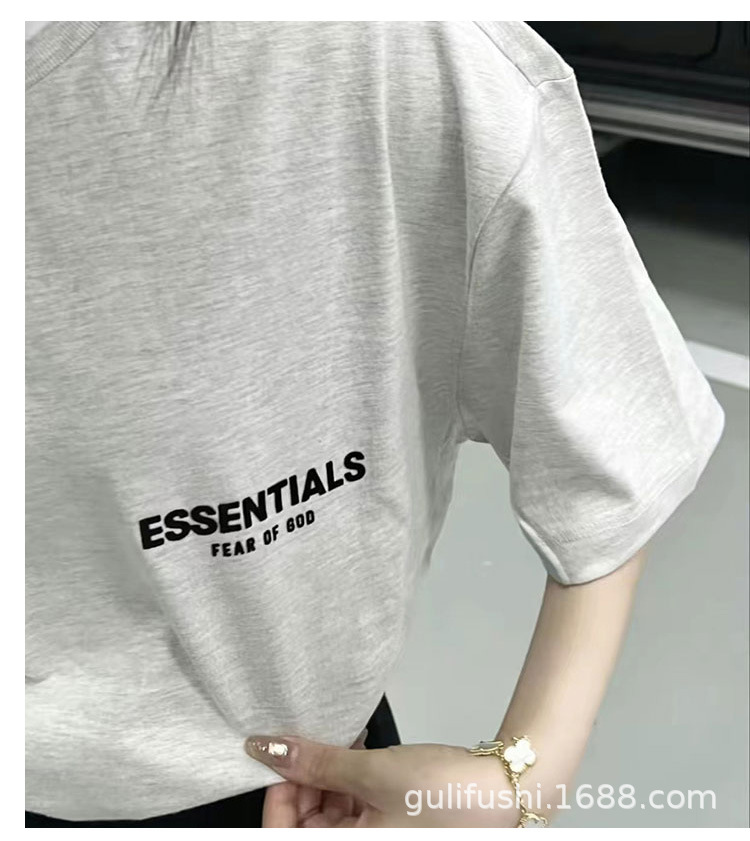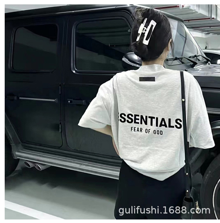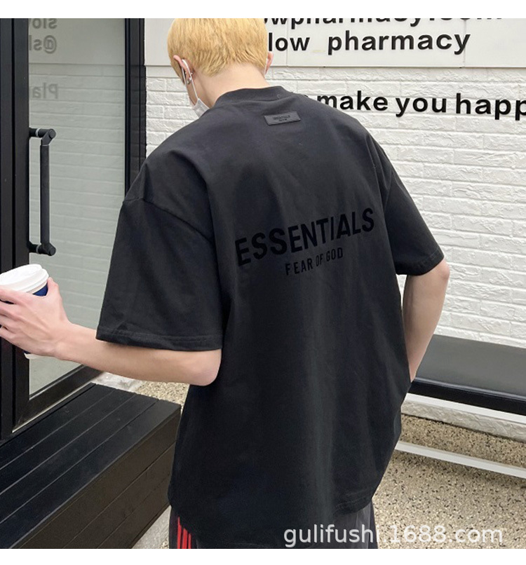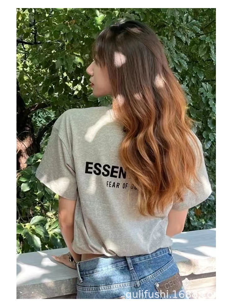 FOG Double Line ESSENTIALS Season 8 Double Line High Street Trendy Brand Short Sleeve Back Plush Printed Short
