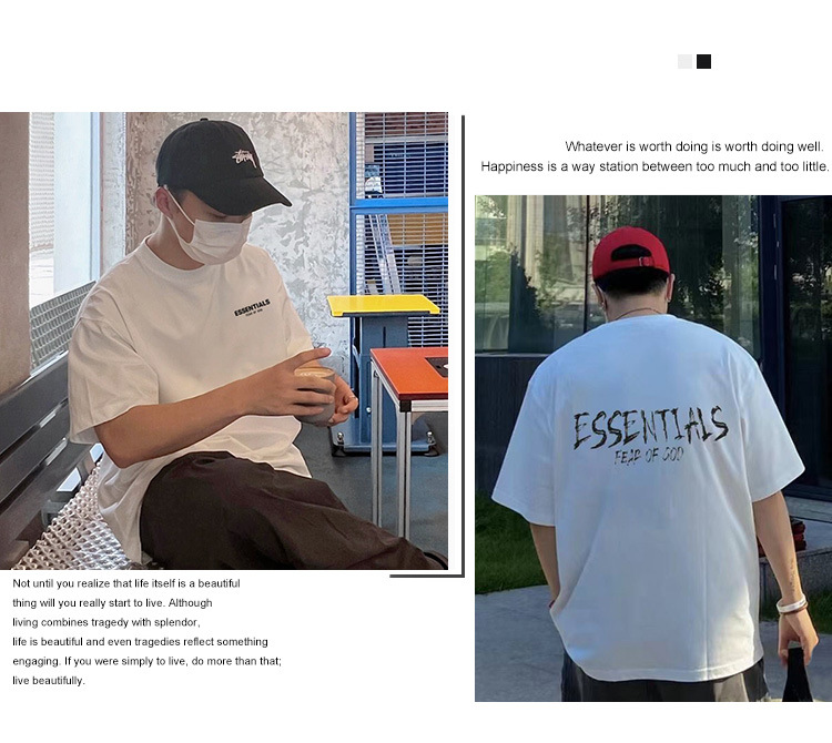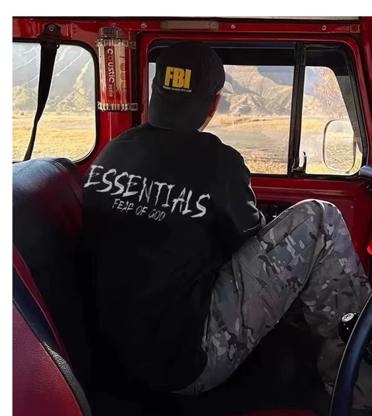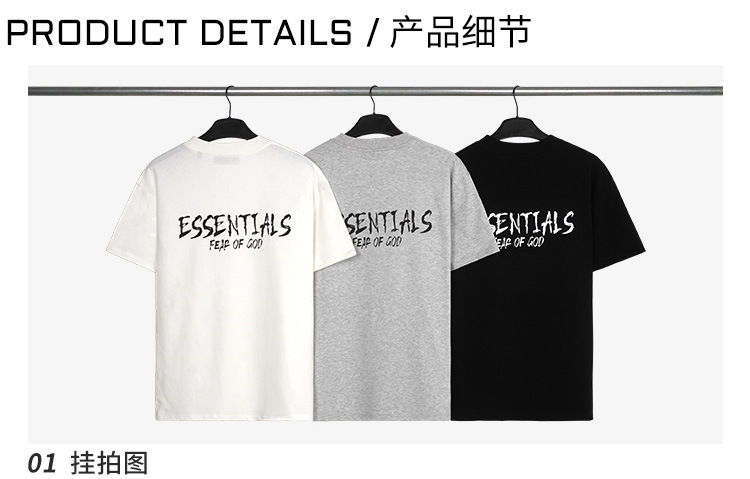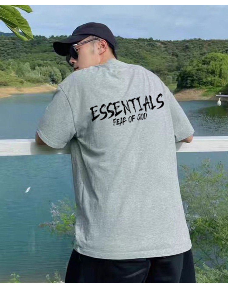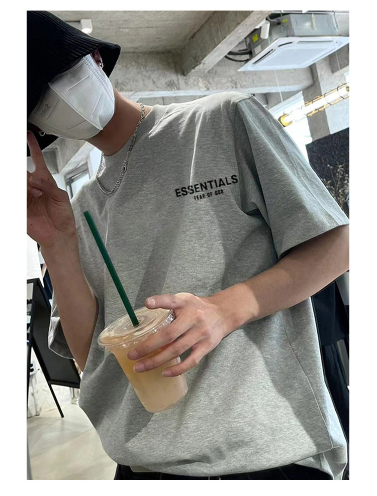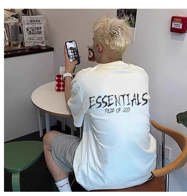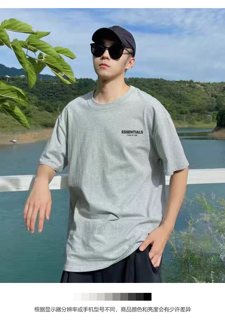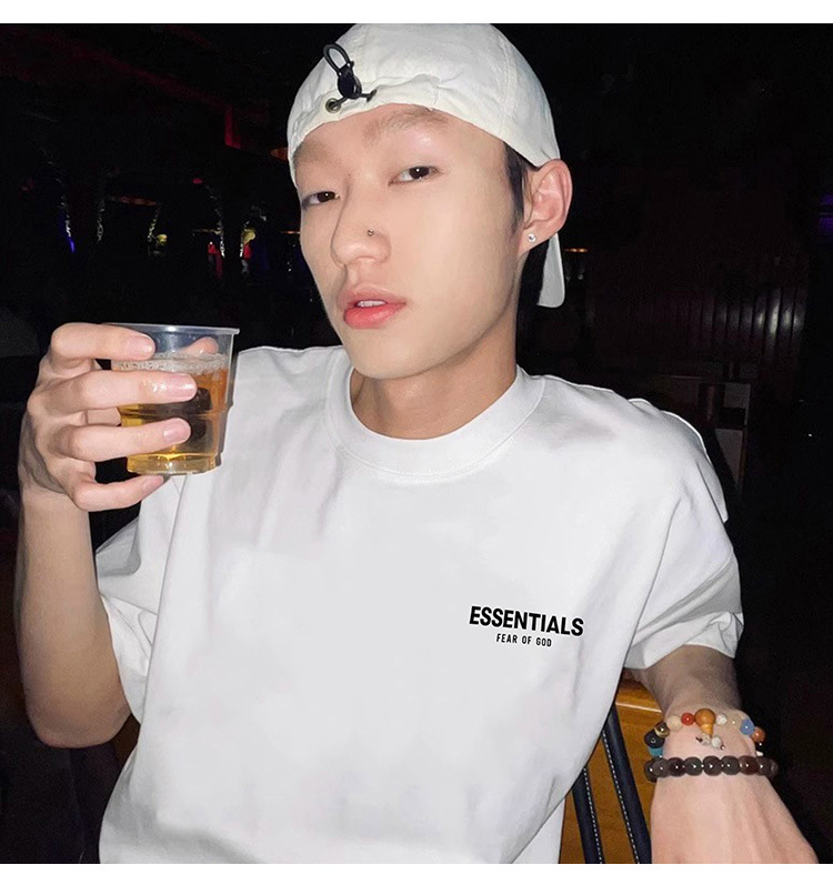 FOG Double Line ESSENTIALS Short Sleeve SS24 Silicone Short Sleeve High Street Trendy Brand Loose Couple T-shirt for Men and Women