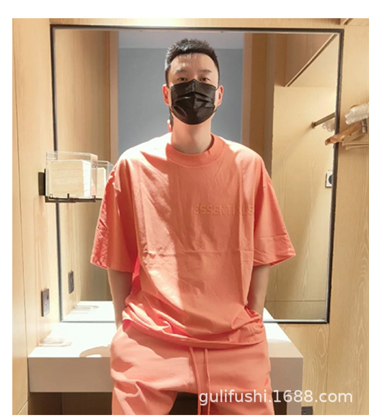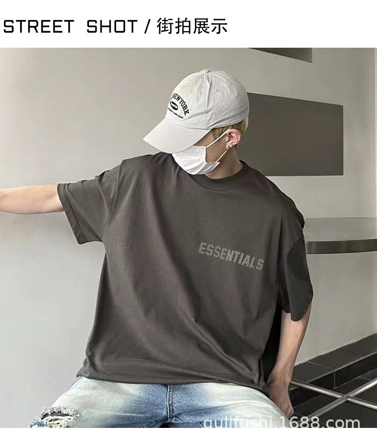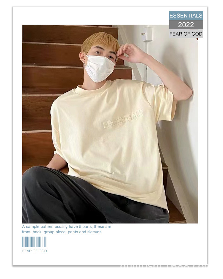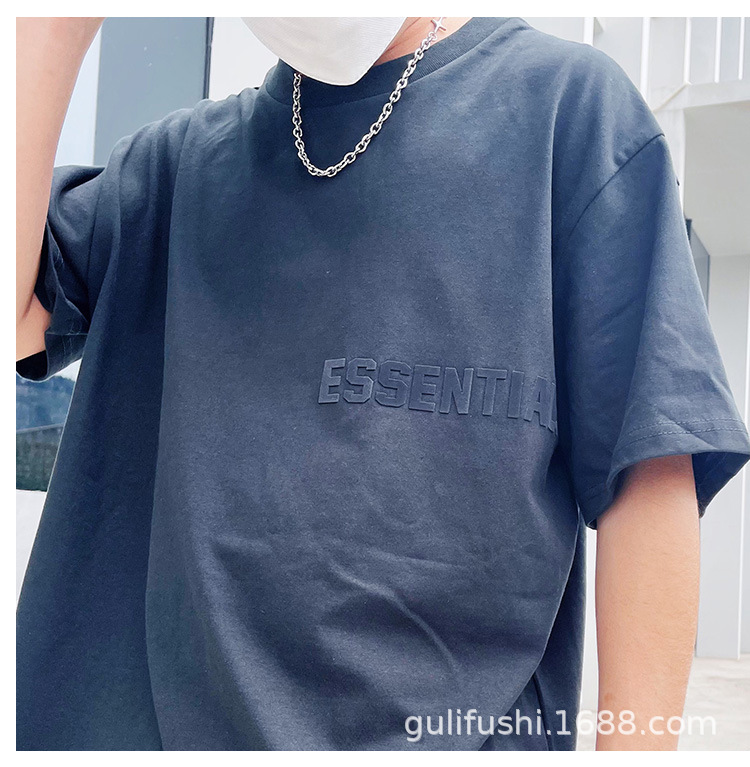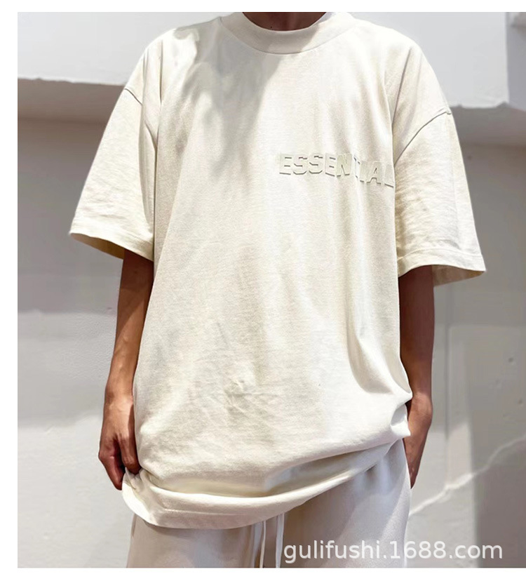 FOG Double Line ESSENTIALS FW22 Chest Plush Small Label Short Sleeve American High Street Trendy Brand Couple T-shirt