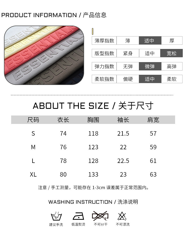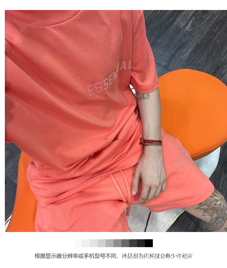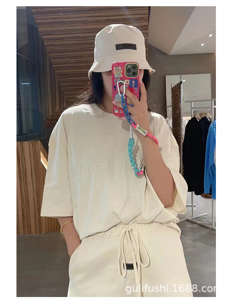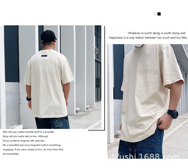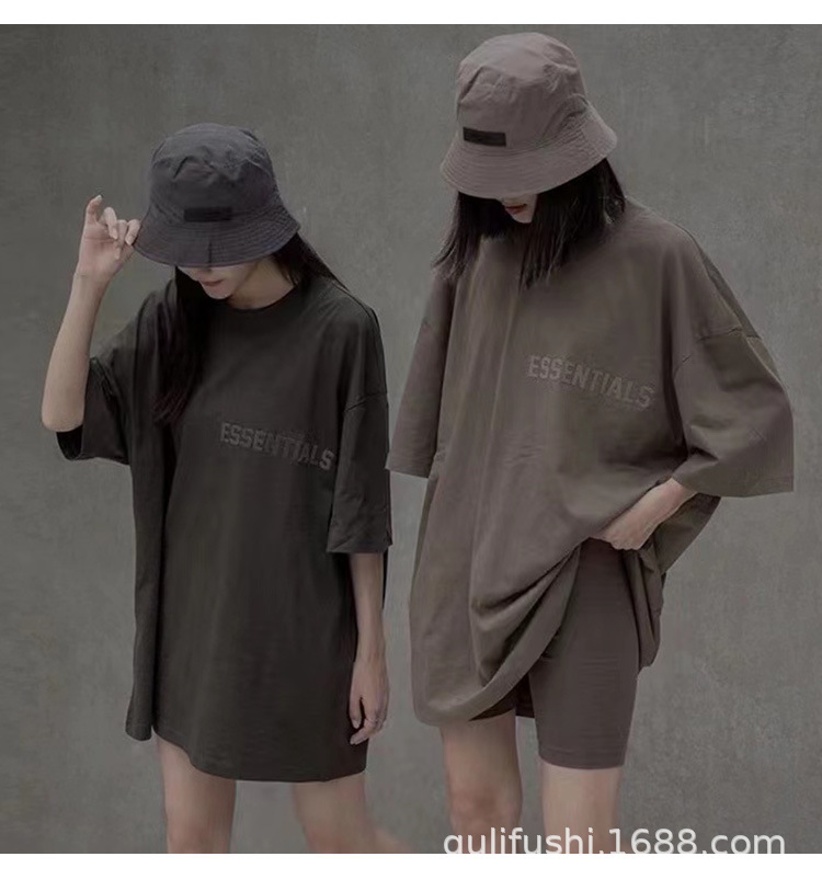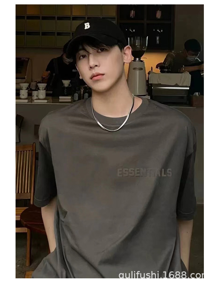 FOG Double Line ESSENTIALS FW22 Chest Plush Small Label Short Sleeve American High Street Trendy Brand Couple T-shirt