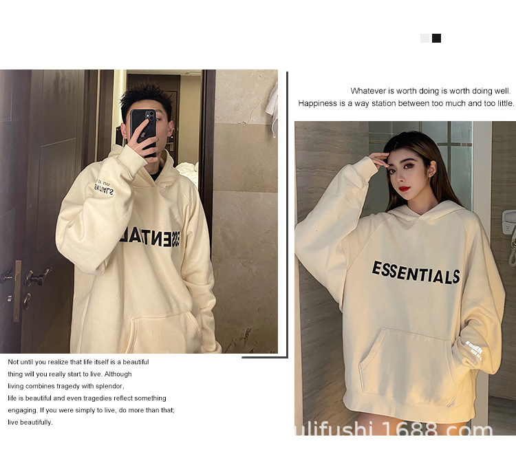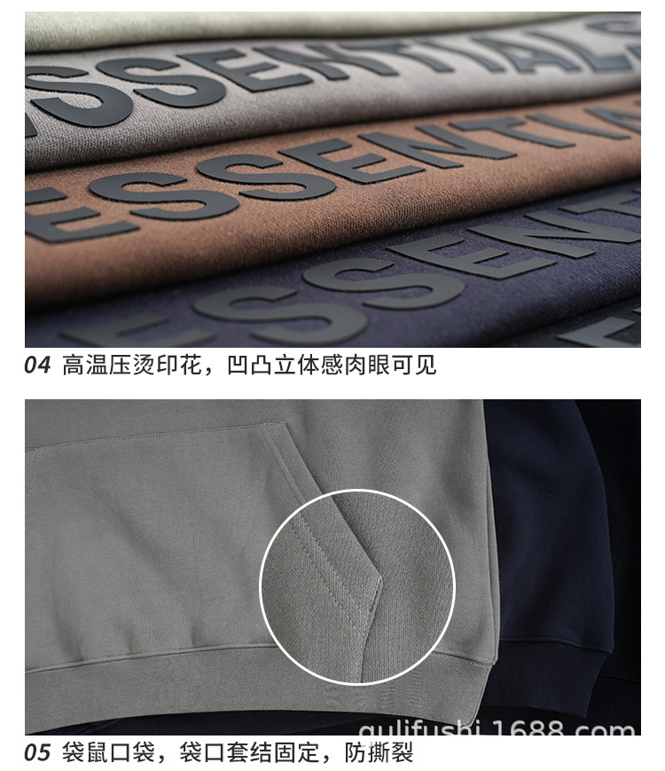 FOG ESSENTIALS Hoodies Silicone Letter Hoodies on Chest Hoodies High Street Loose Jacket