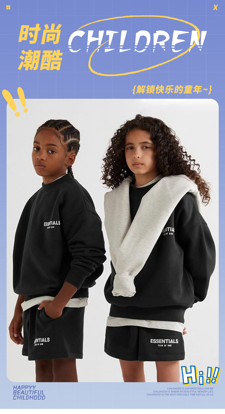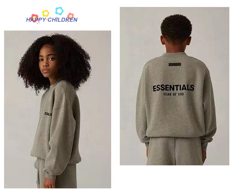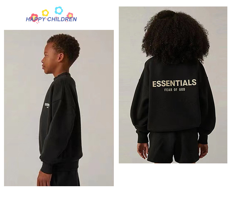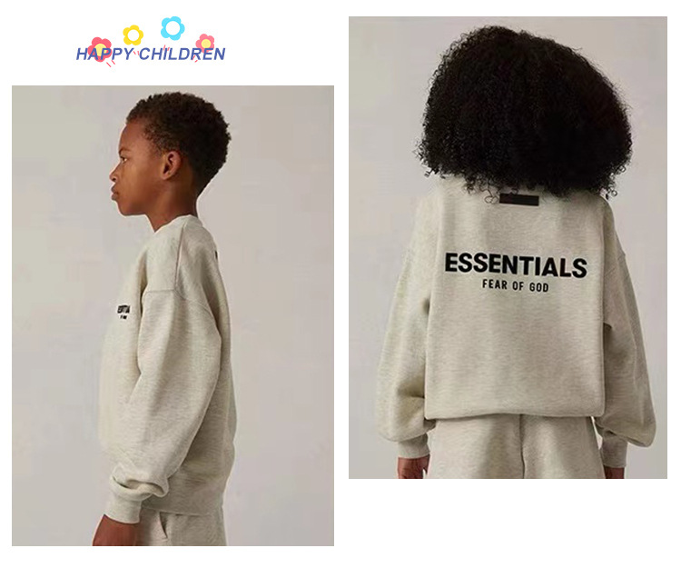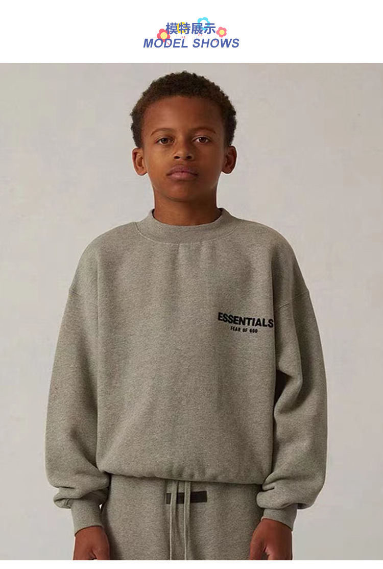 FOG double line ESSENTIALS high street back double row plush round neck hoodie, children's trendy brand outerwear, parent-child outfit