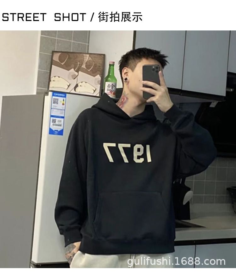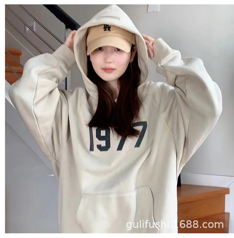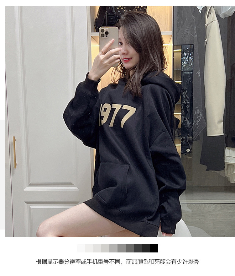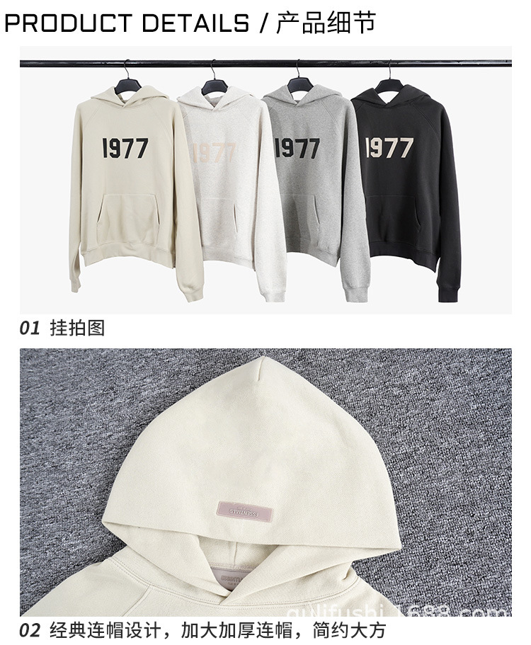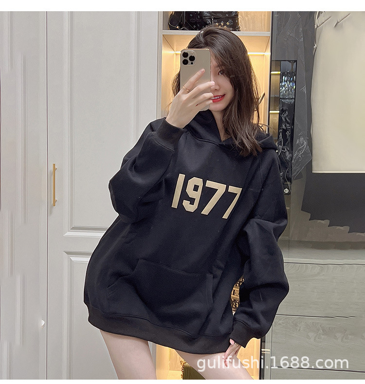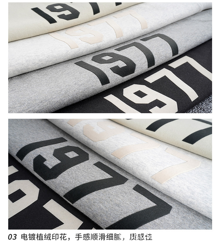 FOG ESSENTIALS High Street 1977 Flocking Logo Hoodie Couple Trendy Brand Jacket